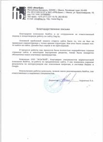 ...Благодарим за работу над нашим сайтом. Сайт стал действительно выглядеть достойно. Достойно нашего предприятия и того качества продукции, которое мы производим....