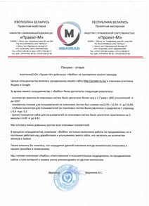 Отзыв (PDF)...Мы убедились в высоком профессионализме команды, а также оценили удобства работы с ними: быстрая обратная связь, позволяющая решать все возникающие вопросы и получать необходимые консультации...