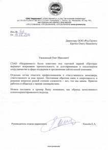...Мы рекомендуем ООО "Ред Групп" в качестве подрядчиков по продвижению сайта в сети Интернет....